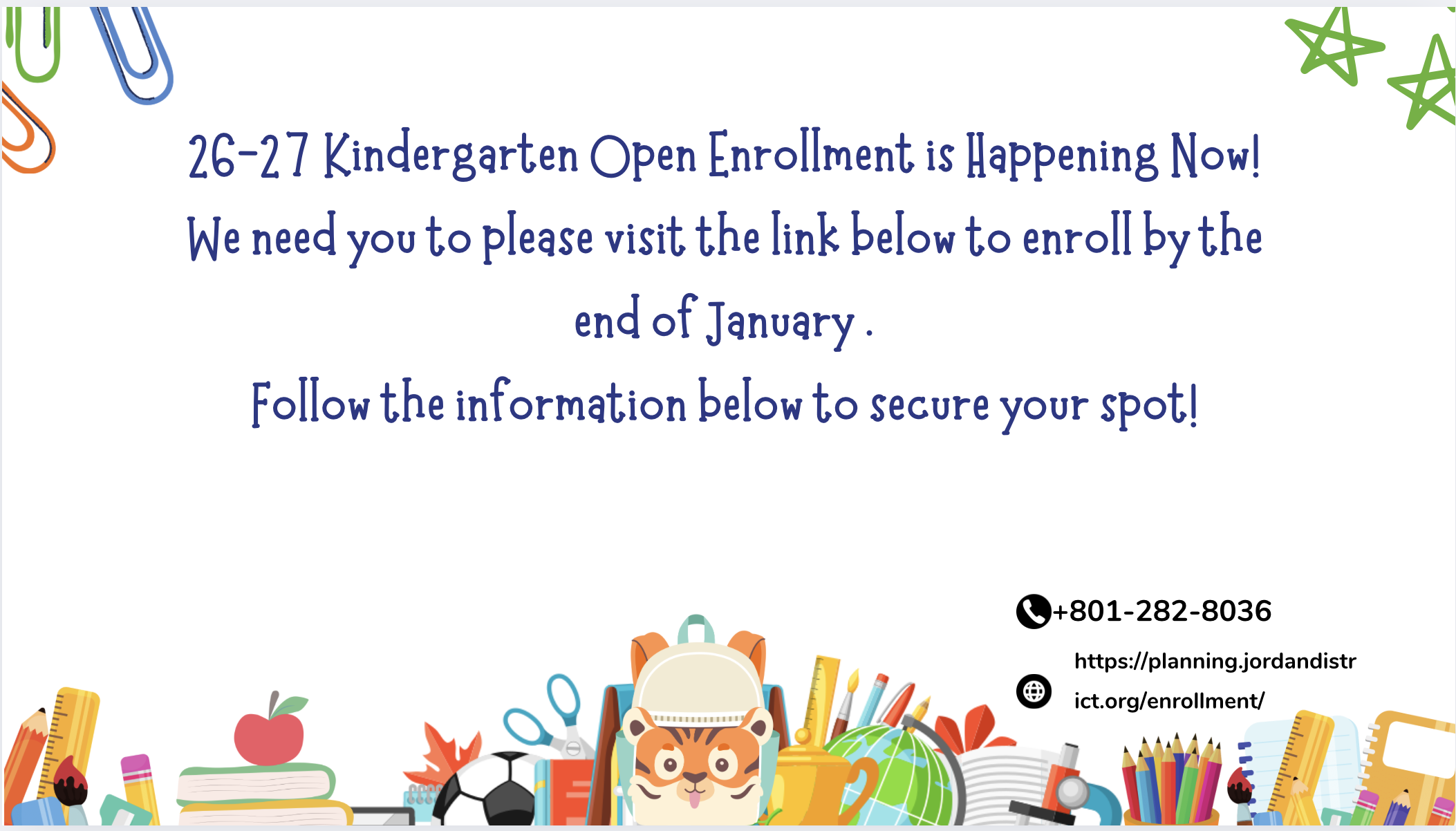 If you have a Kindergarten student for the 2026-2027 school year, please click the link below to enroll: